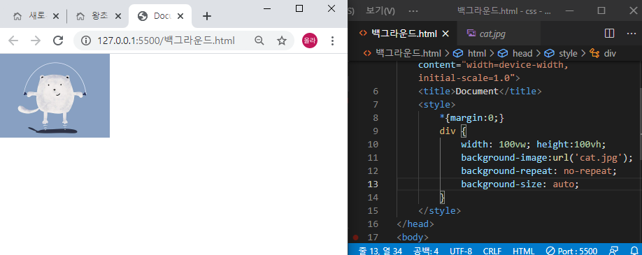 - 속성값 auto는 원래 배경 이미지 크기만큼 표시됩니다.